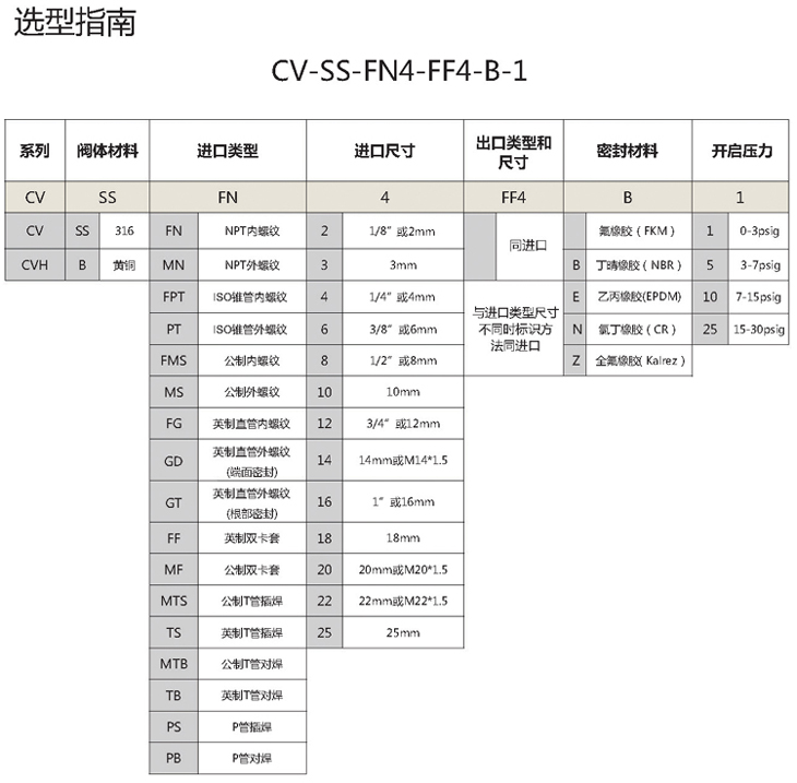 LIKCVH 系列![]() ■ 浮動密封圈,阻止污染物影響密封 ■ 最大工作壓力:6000psig(413bar) ■ 工作溫度:-23°C至204°C (- 10°F至400°F) ■ 開啟壓力:1psig、5psig、10psig、15psig可供選擇 ■ 閥體材料:316不銹鋼,其他材料請與MasterLok公司聯(lián)系 ■ 接口: 1/8”至 1”,3mm至25mm雙卡套 1/8”至 1”螺紋 1/4”至 1”6mm至25mm焊接 |