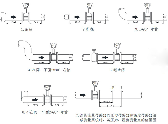 提示:常規(guī)情況下流量計(jì)均遵循前10后5原則(既:流量計(jì)前方最少要有10*D(D為流量計(jì)內(nèi)徑)長(zhǎng)度的直管段,后方要有5*D長(zhǎng)度的直管段。