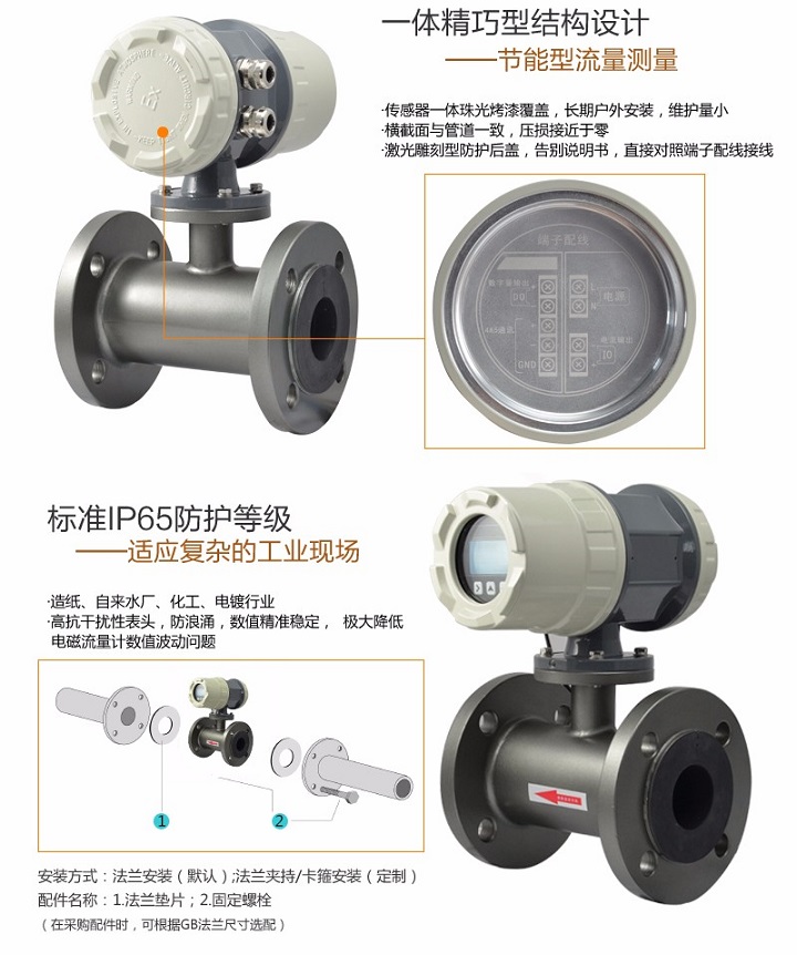 進口分體式電磁流量是一種根據法拉第電磁感應定律來測量管內導電介質體積流量的感應式儀表,采用單片機嵌入式技術,實現數字勵磁,同時在電磁流量計上采用CAN現場總線,屬國內首創,技術達到國內領先水平。