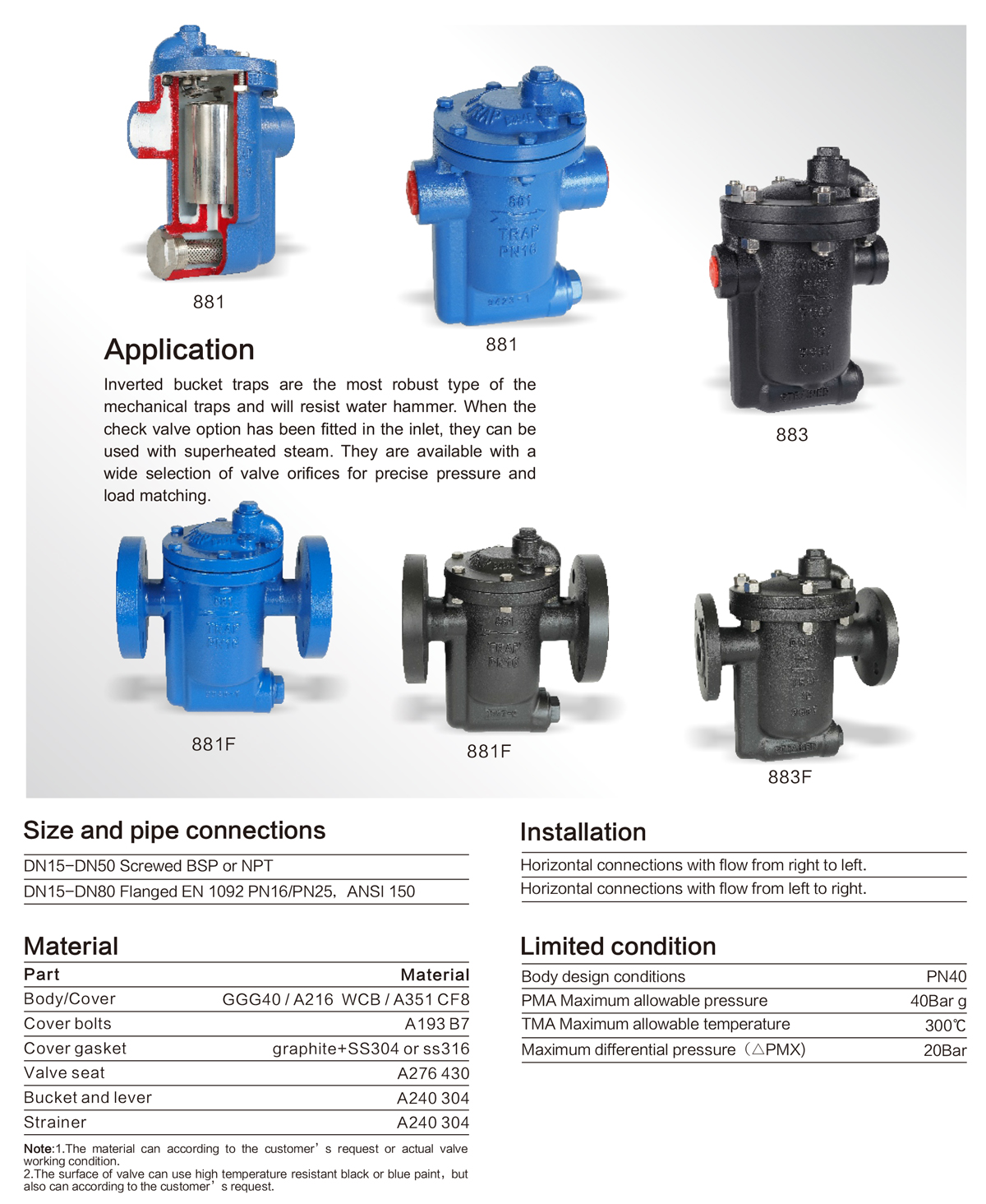 進口進口法蘭疏水閥的開啟和關閉是根據凝結水和蒸汽的密度并來動作的,工作動作準確,可靠。其性能特點為:能夠連續又能間歇排放飽和凝結水加熱設備不會有水積聚,從而獲得高的熱效率;耐水擊倒置桶結構不會因水擊而遭到損壞,使用壽命長;排空氣性能好倒吊桶上設有溢出排氣孔,可有效地預防蒸汽氣鎖和空氣氣堵;允許背壓率達85%;維修方便內部零件采用不銹鋼制造,均安裝在閥蓋上,并設有過濾網裝置,日常維護方便。廣泛用于石油、化工、電力、印染紡織、醫療、醫藥等行業的各種蒸汽加熱設備、蒸汽管網和低過熱蒸汽工況。能夠迅速排除凝結水,有效地組織蒸汽泄漏。