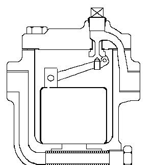 倒吊桶式疏水閥內(nèi)部是一個(gè)倒吊桶為液位敏感件,吊桶開(kāi)口向下,倒吊桶連接杠桿帶動(dòng)閥心開(kāi)閉閥門。倒吊桶式疏水閥能排空氣,不怕水擊,抗污性能好。過(guò)冷度小,漏汽率小于3%,最大背壓率為75%,連接件比較多,靈敏度不如自由浮球式疏水閥。因倒吊桶式疏水閥是靠蒸汽向上浮力關(guān)閉閥門,工作壓差小于0.1MPA時(shí),不適合選用。